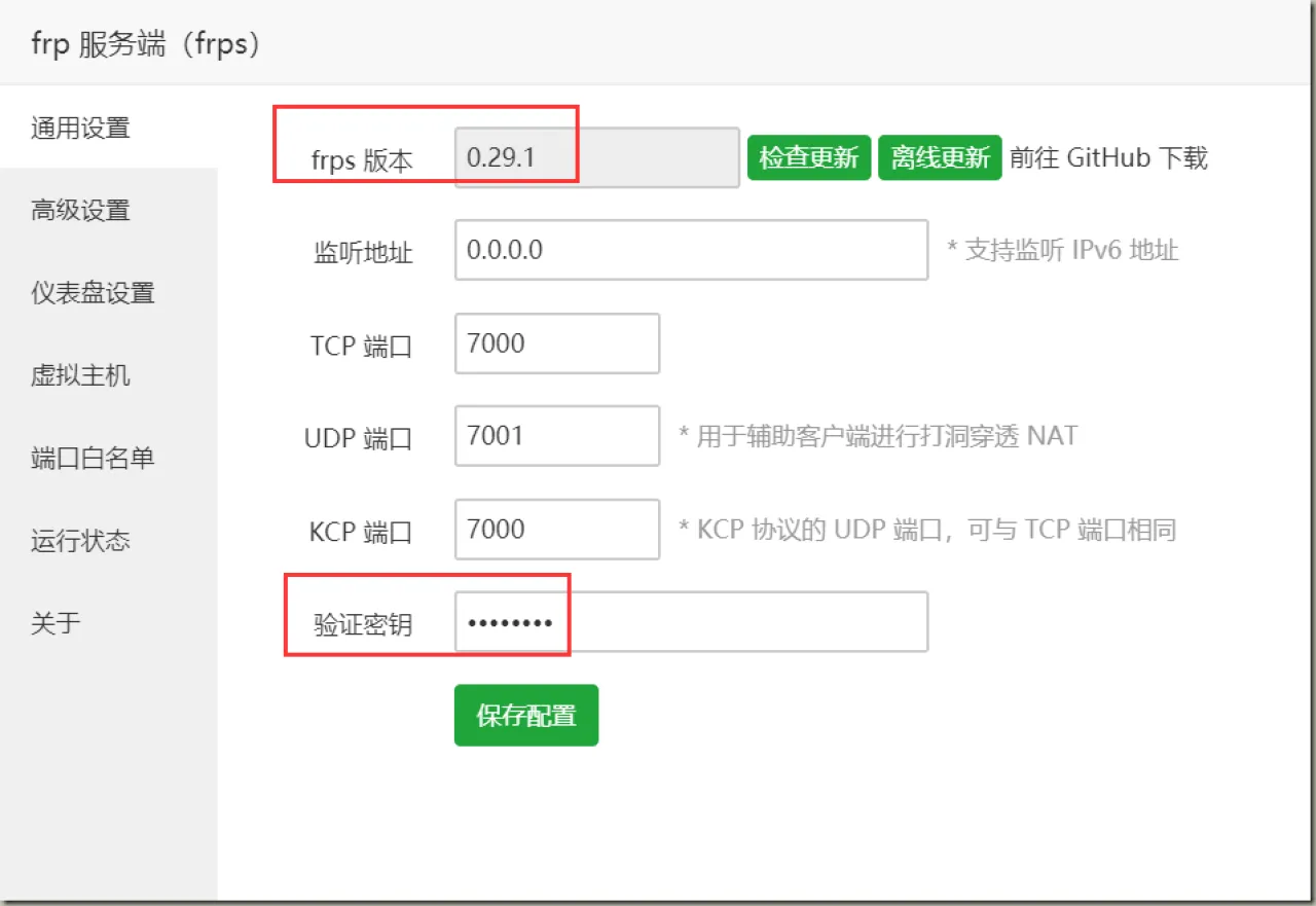 注意服务器版本这里是 0.29.1,呆会如果是在 windows 上下载 frpc 的版本也一定要是 0.29.1