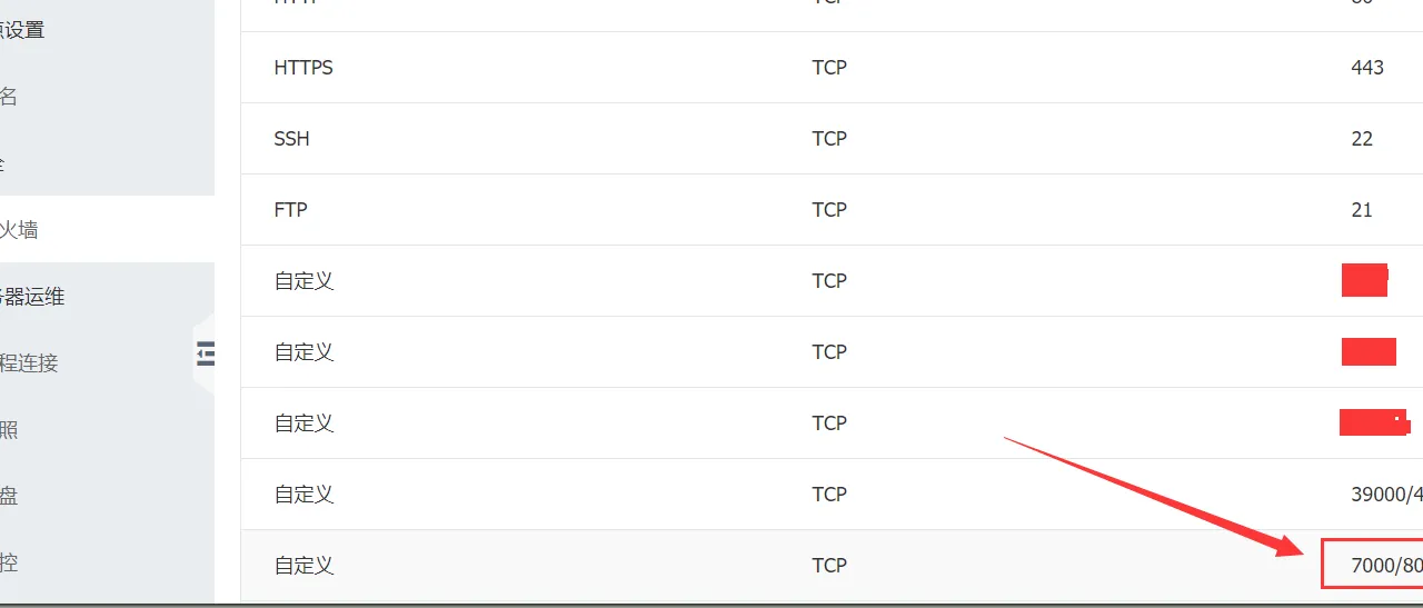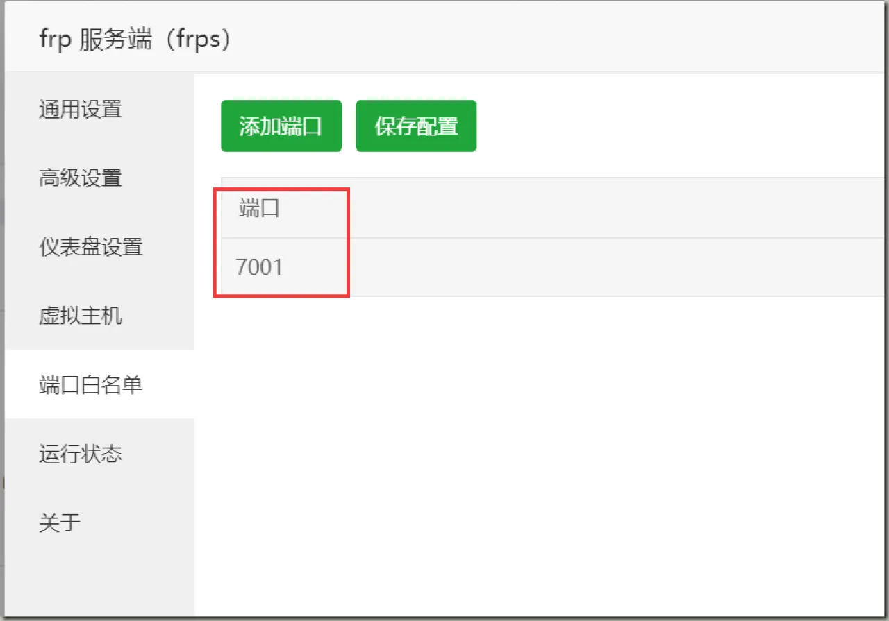 然后在宝塔的面板安全里面放行你所需要用到的 FRP 端口号,我这里放行的是 7000-8000