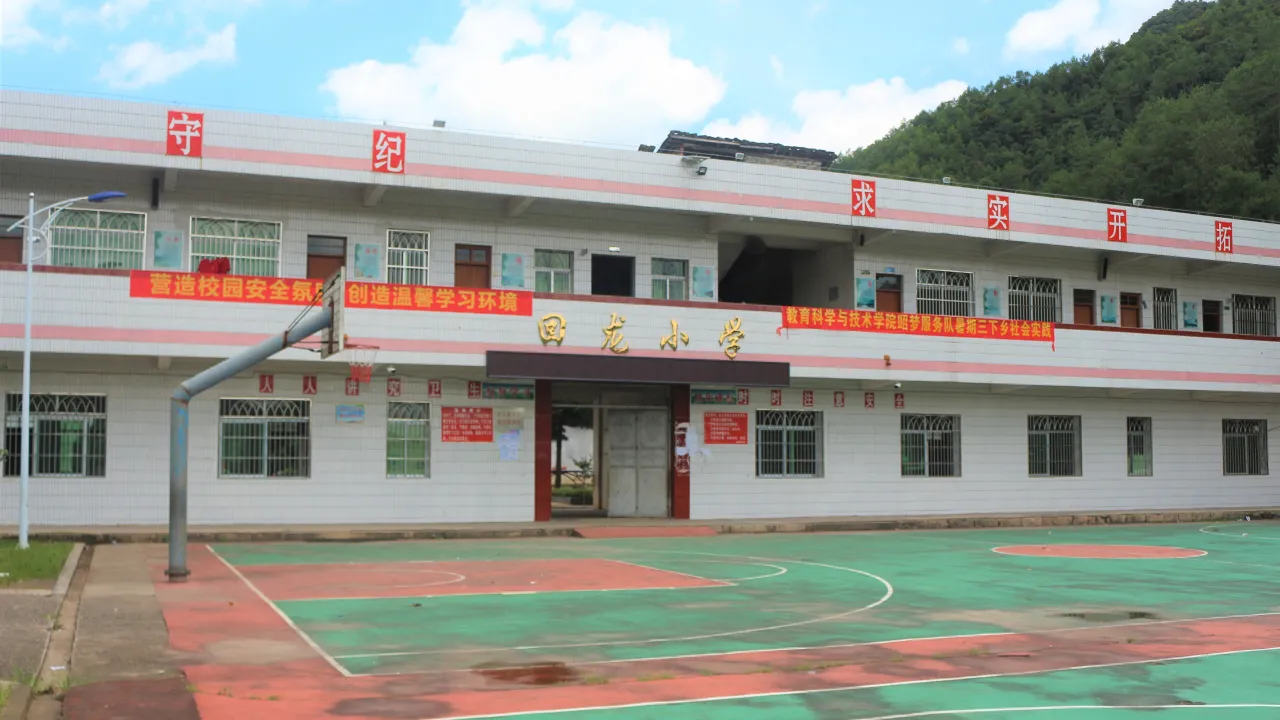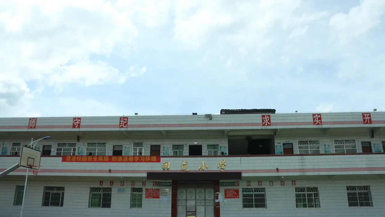 回龙小学四周环山,淳朴的房屋以及大片大片的农田,一切都显得那么恬静。